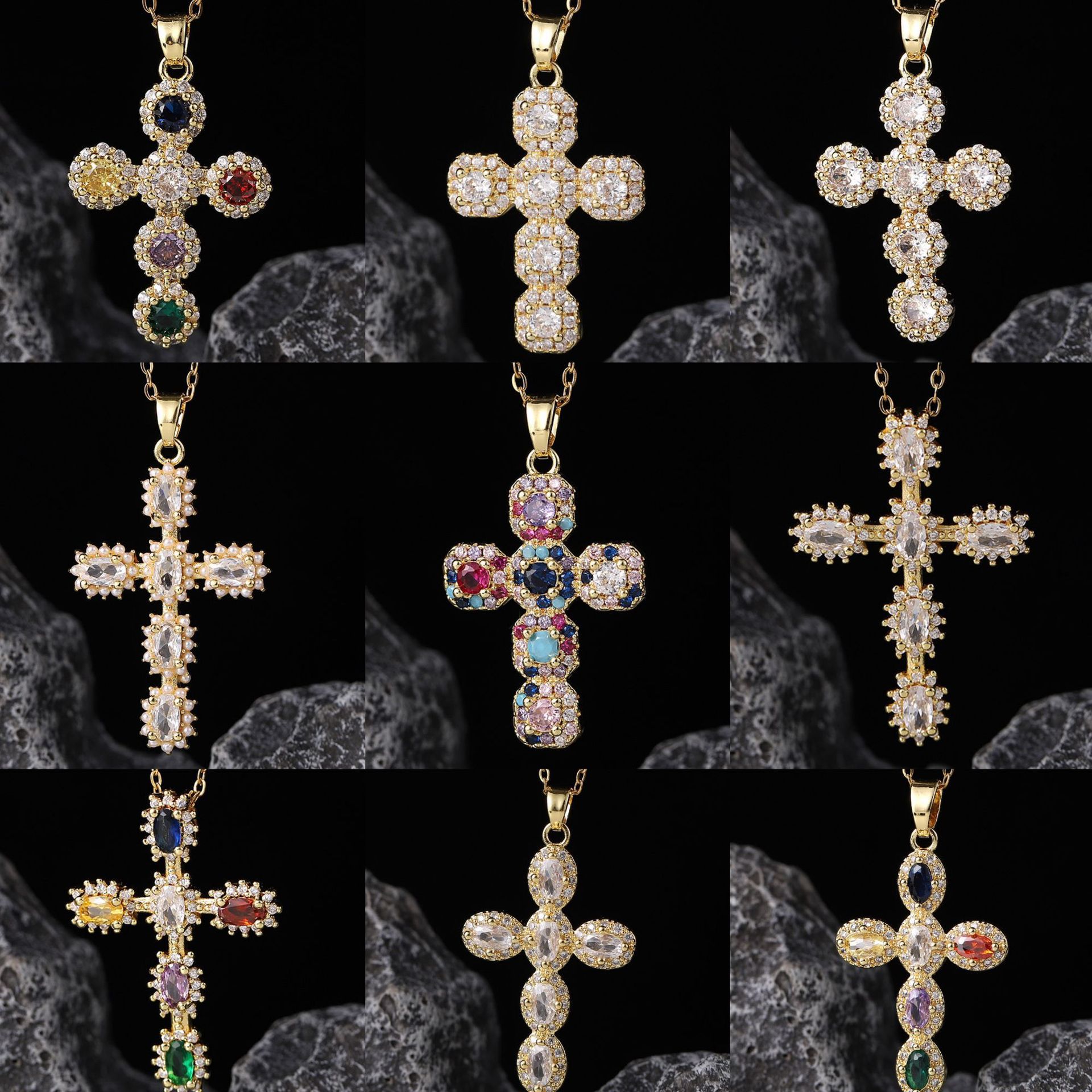 [Customized] Fashion Cross Sweater Necklace Women's Ins Style Zircon Niche Cross Pendant Bright Stone Necklace