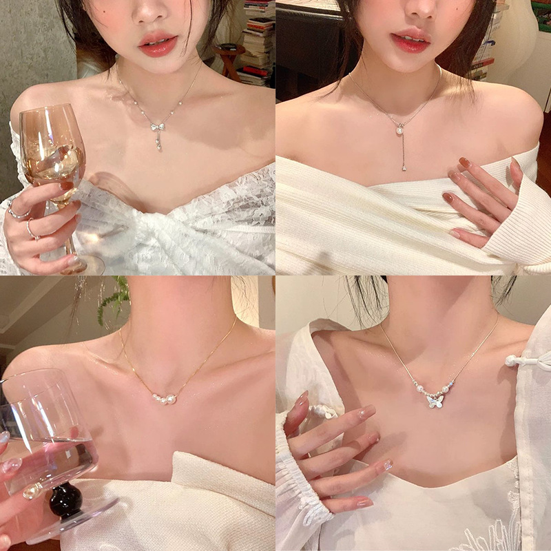 Gentle Pearl Necklace Women's Light Luxury Niche Design High-End Clavicle Chain Internet Celebrity Temperament Easiest for Match Necklace Can Be Customized
