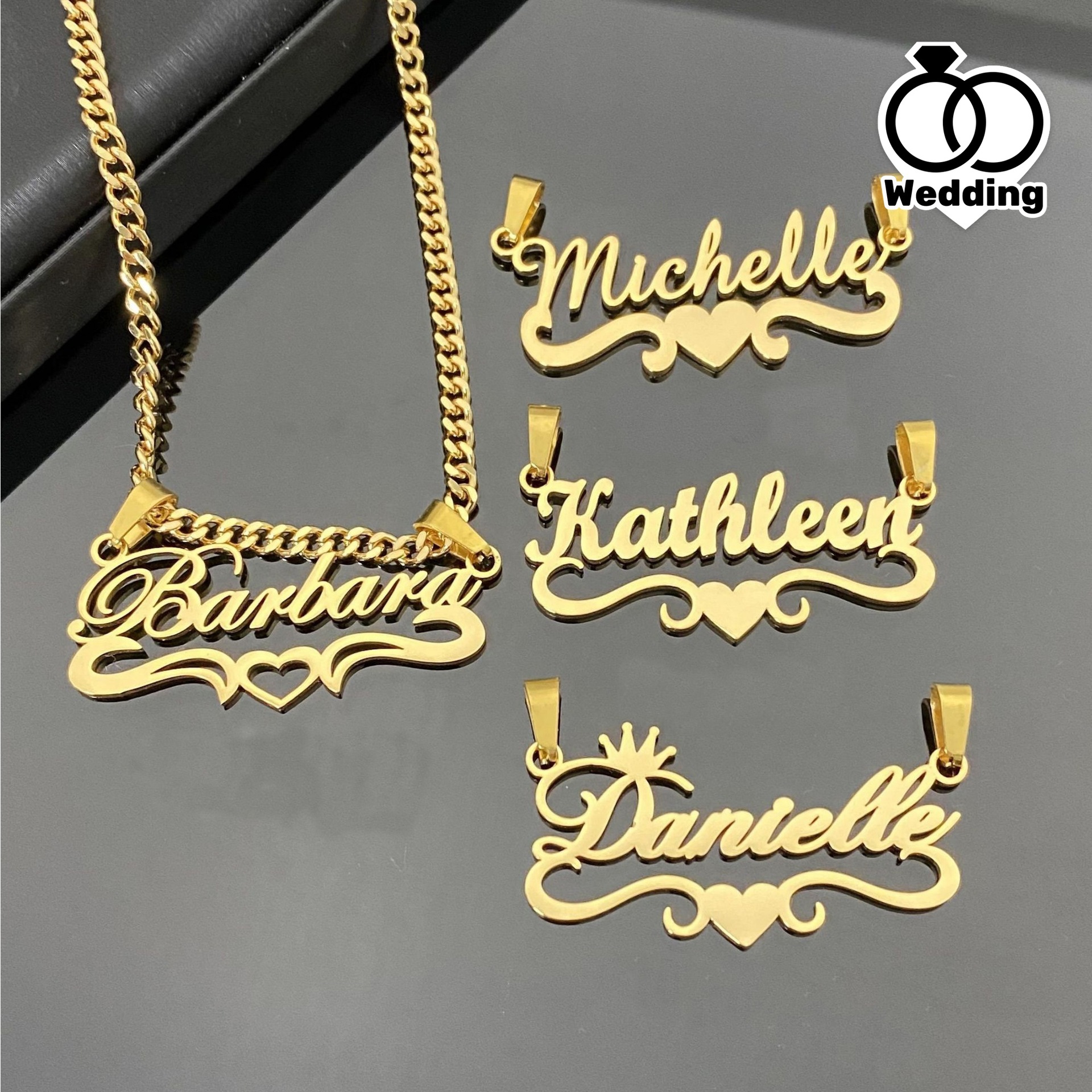 Personalized Electroplated Double-Layer Nameplate Necklace European and American Popular Stainless Steel Custom-Made Necklace with Heart Words