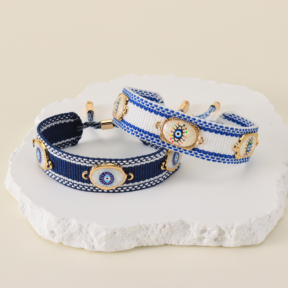 Cross-Border Fashion Alloy Devil's Eye Hand-Woven Bracelet for Women European and American Personalized Adjustable Tassel Bracelet