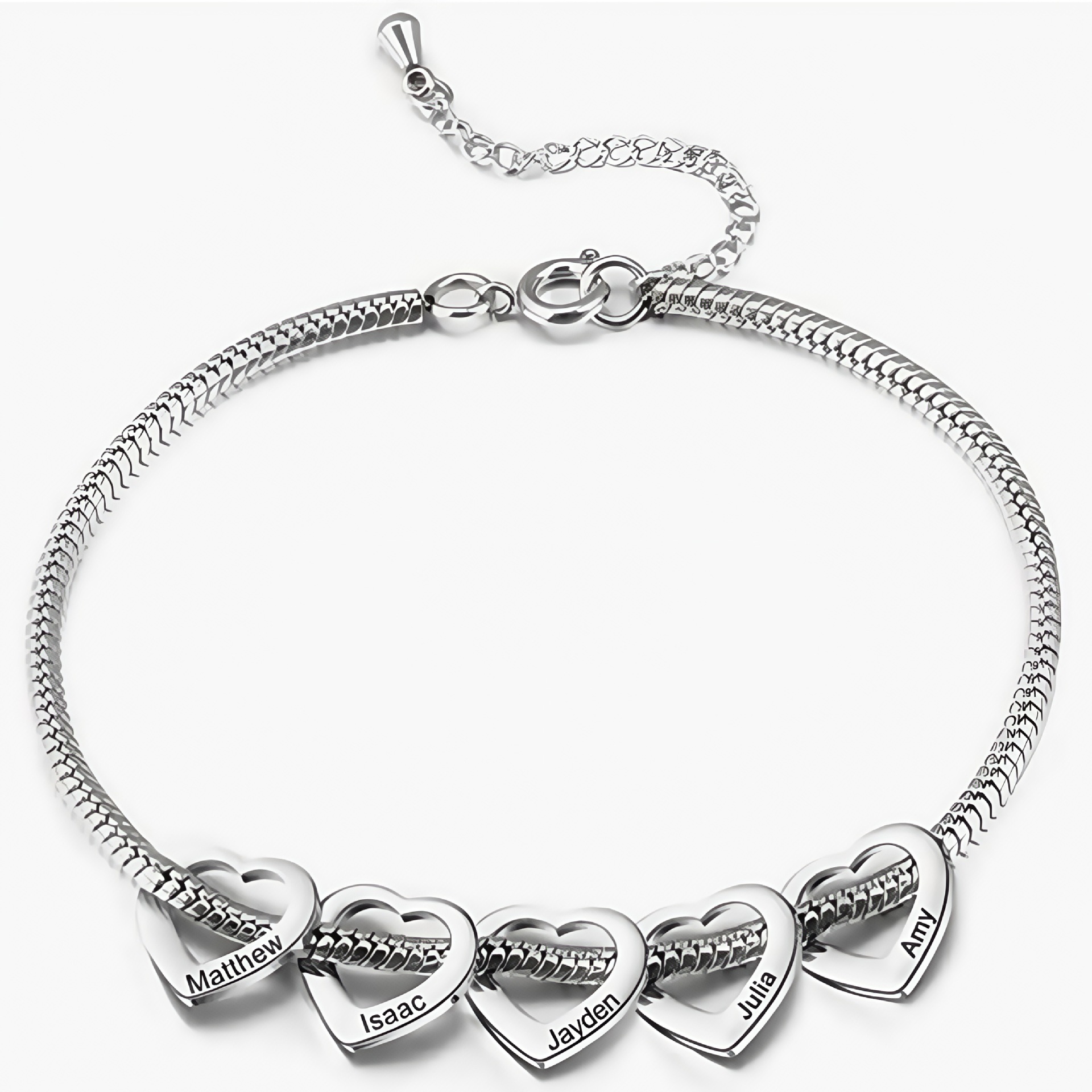 Personalized Stainless Steel Curved Peach Heart Bracelet with Customizable Engraved Name for Women, European and American Two-Hook Bracelet