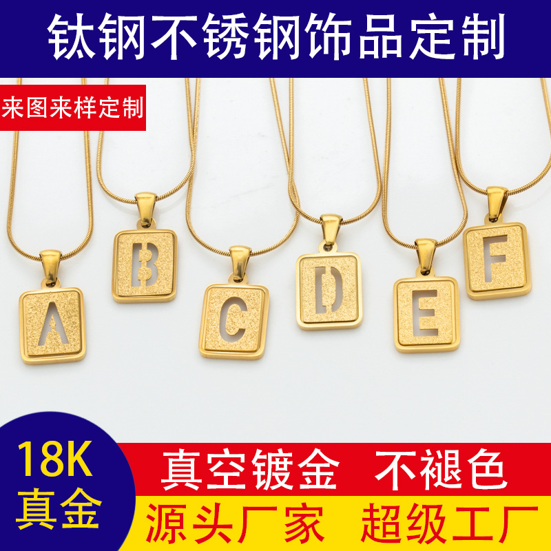 Customized Stainless Steel Hollow Sandblasted English Letter Pendant 18K Real Gold DIY 26 Letter Round Snake Chain Necklace