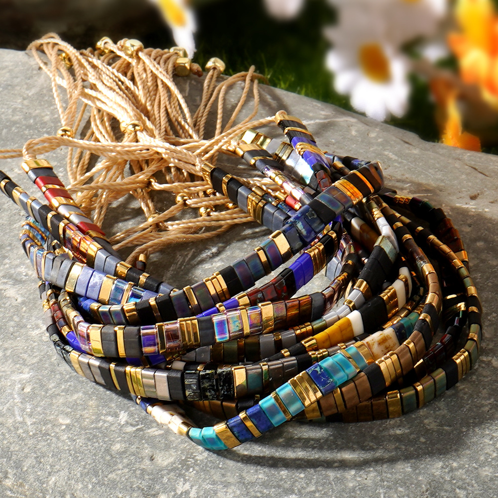 Customized Retro Ethnic Style Stacked Bracelets Tila Beads Hand-Woven Bracelets for Men and Women Colorfulful Elastic Bracelets Processing