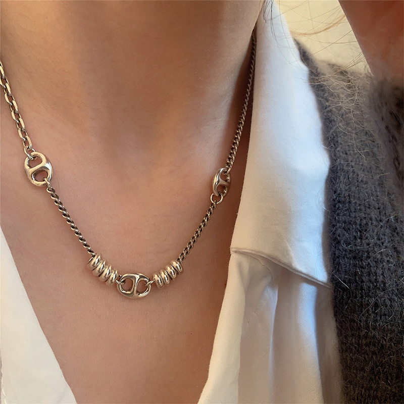 Yinruitai S925 Sterling Silver Retro Pig Nose Splicing Necklace Women's New Accessible Luxury Niche High-End Women's Customization