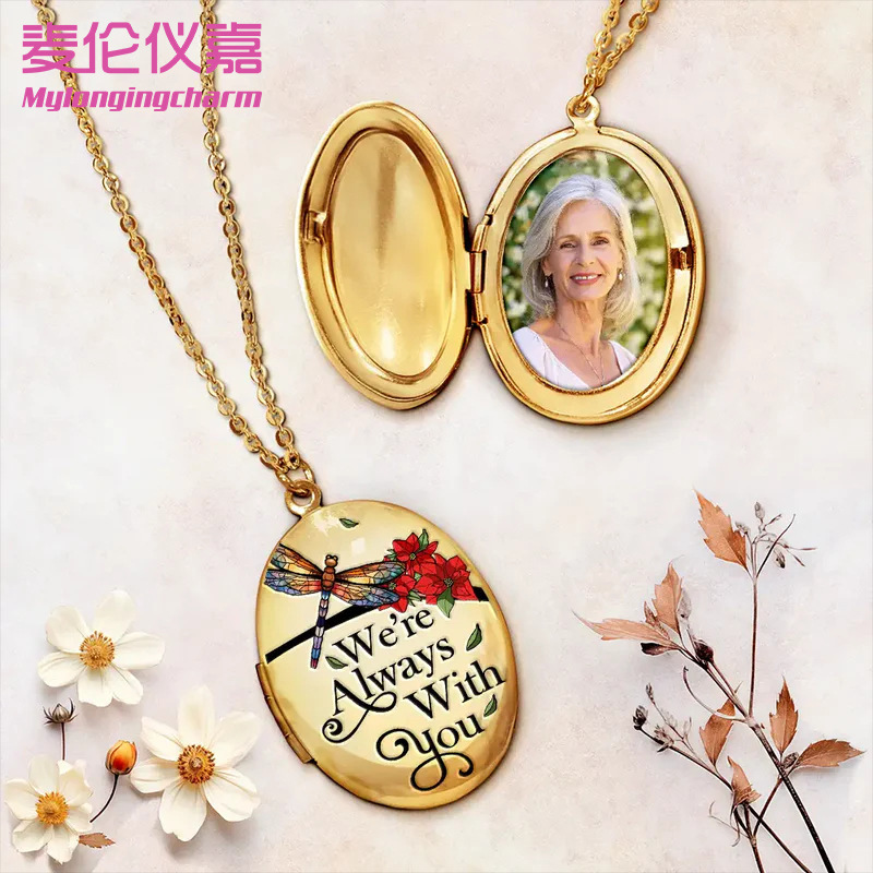 European and American Cross-Border Thanksgiving Jewelry, a Customized Stainless Steel Personalized Engraving Round Photo Oval Photo Box Necklace