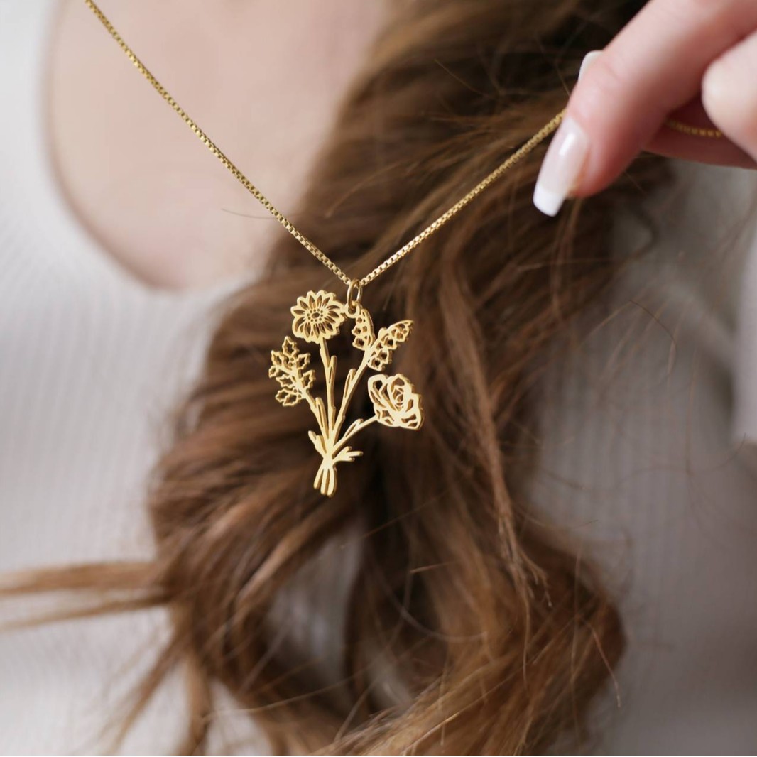 Europe and the United States cross-border necklace December words real gold electroplating gold birth flower bouquet necklace birth flower can be customized diy