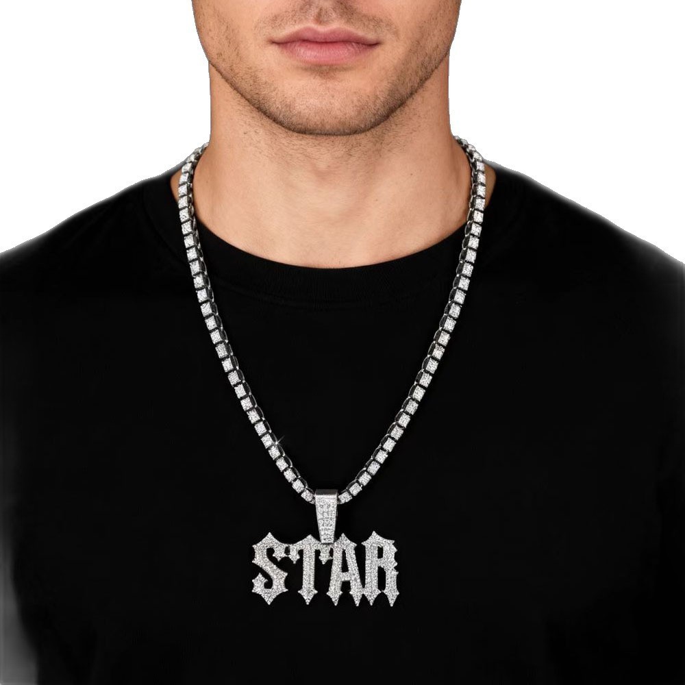 Cross-Border Hot-Selling Letter Star Personalized Niche Pendant Hip-Hop Men's Eco-Friendly Alloy Twist Necklace Jewelry Customization