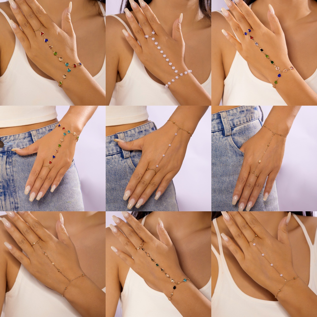 European and American Cross-Border Ins Style Colorfulful Geometric Zircon Finger Chain Elegant Personalized Elegant Dopamine Popular Bracelet