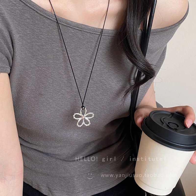 Processing and Customization Simple Ins Style Metallic Silver Flower Pendant Necklace Women's Retro Niche Sweater Chain Versatile