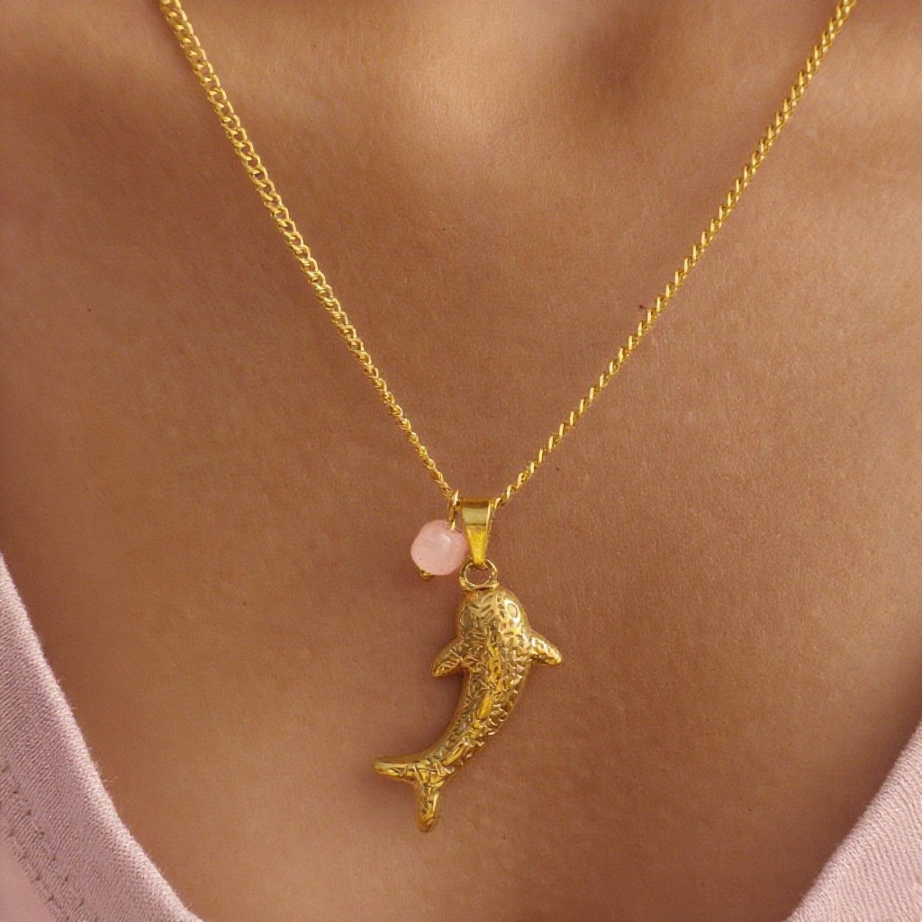Cross-Border Popular Stainless Steel Women's Fashion Beach and Ocean Theme Personalized Shark Natural Stone Necklace