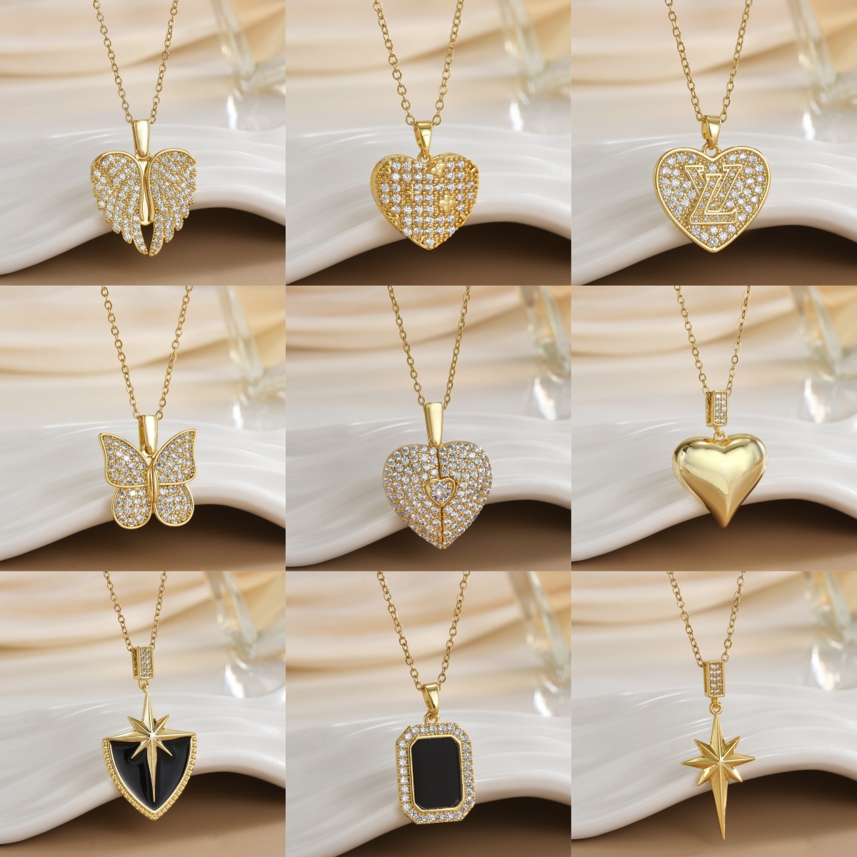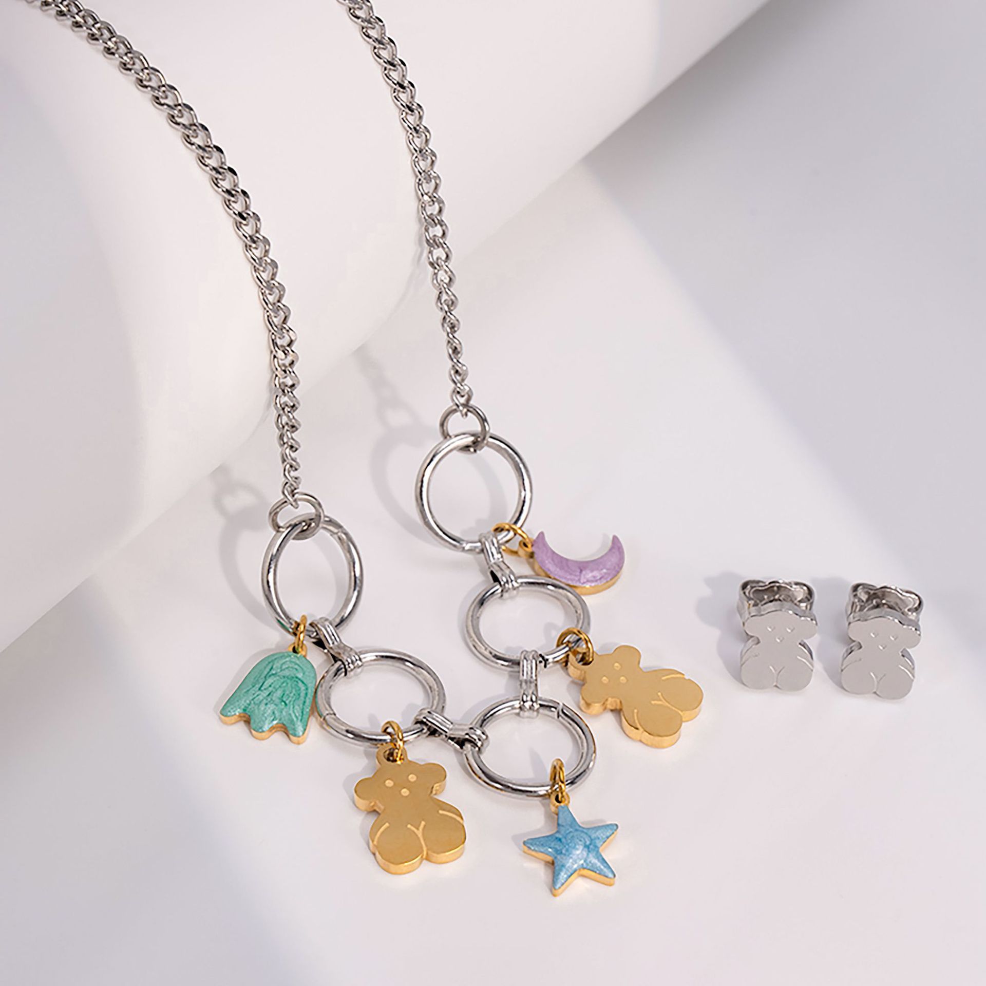 New Custom Stainless Steel Bear Pendant Necklace, 18K Gold Plated High-End Clavicle Chain, Titanium Steel Wholesale Jewelry