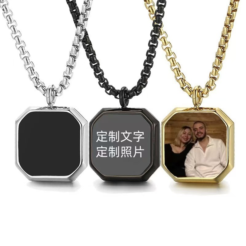 Cross-border Thermal Imaging Color Change Photo Personalized Customized Stainless Steel Necklace Men and Women Souvenirs Christmas Gifts