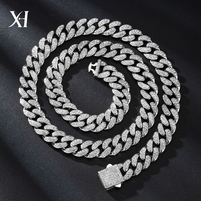 Customized Cuban Necklace Full of Diamonds, European and American Hot-Selling Large Gold Chain, Cross-Border Hip-Hop Popular Fashion Jewelry Manufacturer