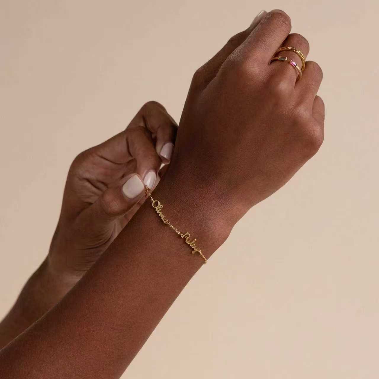 DIY Multi-Name Name Bracelet Personalized Letter Family Jewelry Gift European and American Stainless Steel 1-3 Name Bracelet
