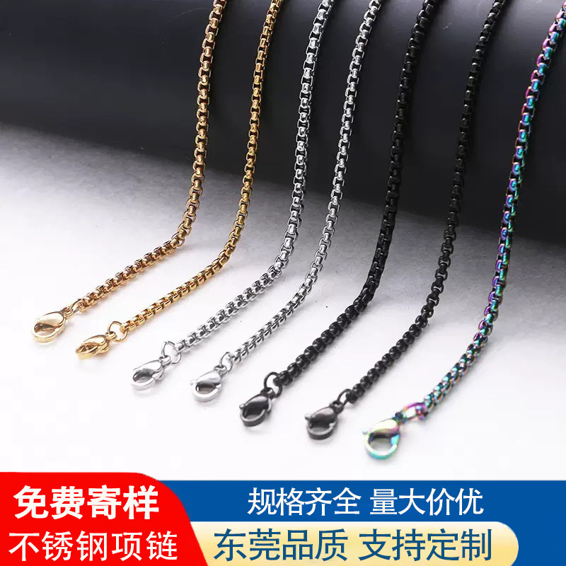 Customized Stainless Steel Necklace Square Pearl Chain European and American Cross-Border Titanium Steel Jewelry Personalized Hip-Hop Chain Bracelet with Chain