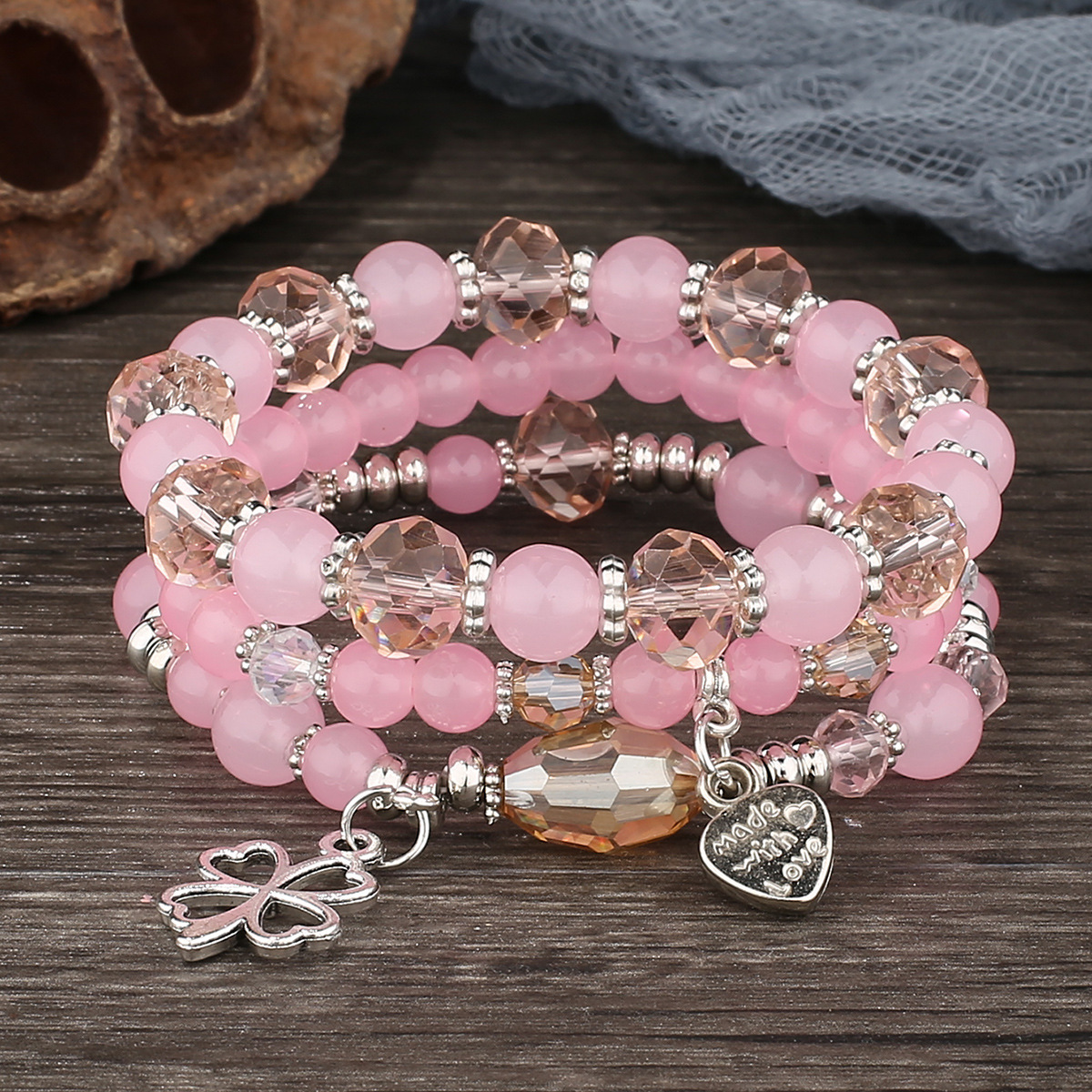 Custom New Bohemian Vacation Fashion Bracelet suit Glass Beads Four-leaf Clover English Pendant Jewelry