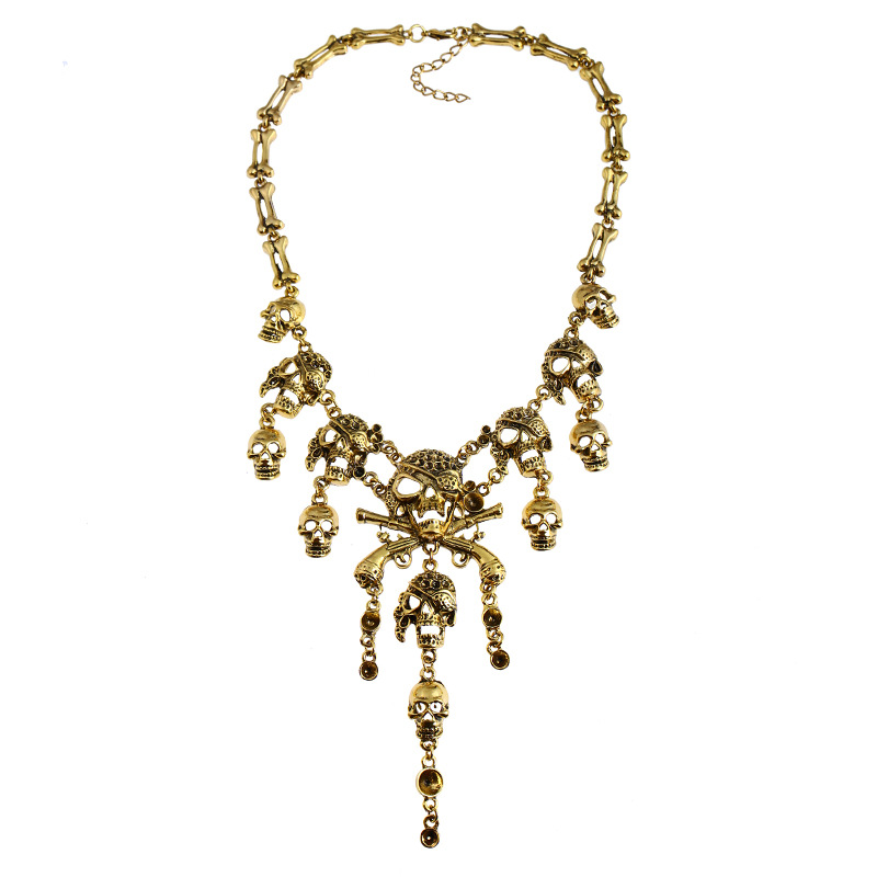 Cross-Border Halloween Exaggerated Skull Necklace Personalized European and American Festival Retro Ghost Head Tassel Pendant Wholesale