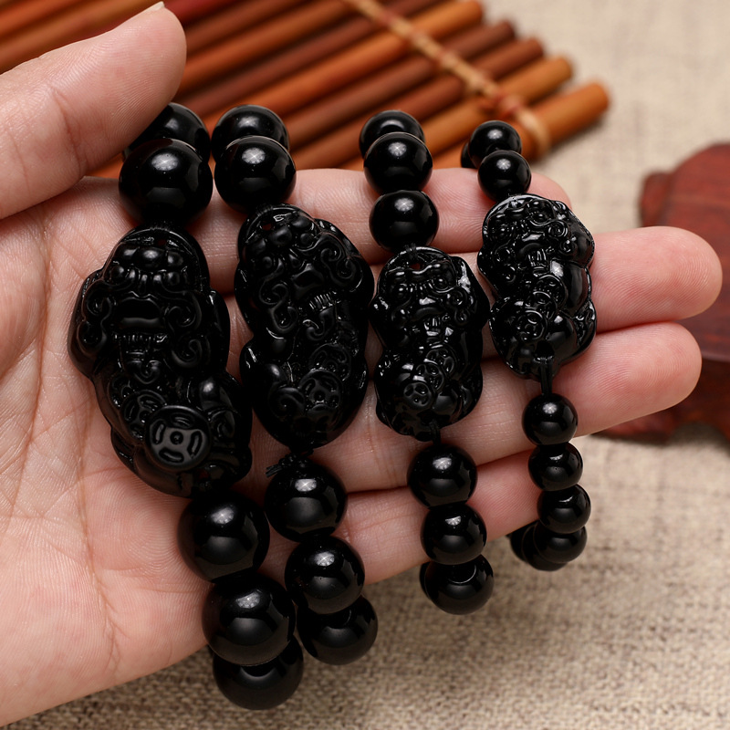 Imitation Obsidian Pixiu Bracelet Glass Non-Fading Pixiu Bracelet Crystal Black Glass Pixiu Bracelet
