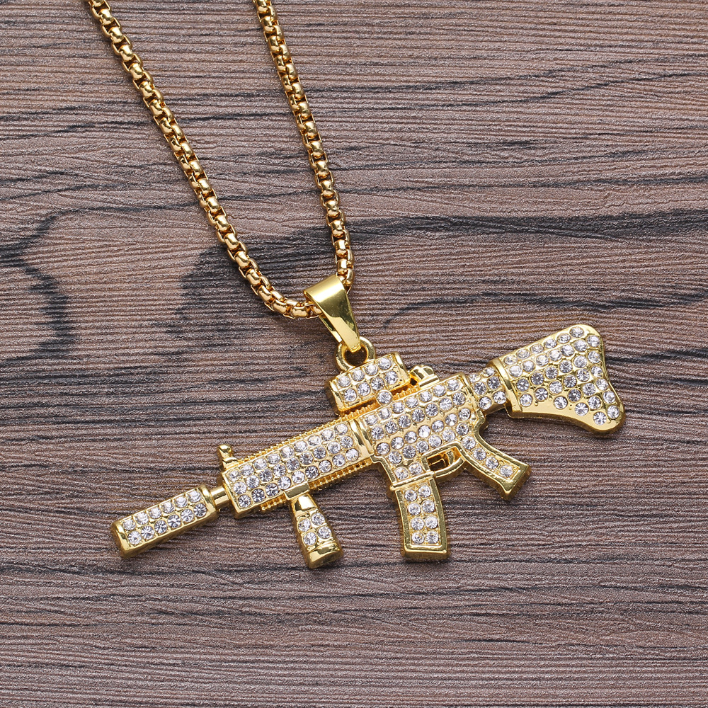 European and American Hip Hop Necklace Gun Shape Necklace Gun Pendant with Stainless Steel Square Pearl Chain