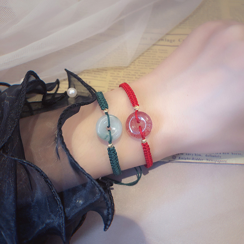 Simple couple bracelet peace buckle strawberry Crystal chalcedony handmade woven red rope jewelry wholesale girlfriends gift