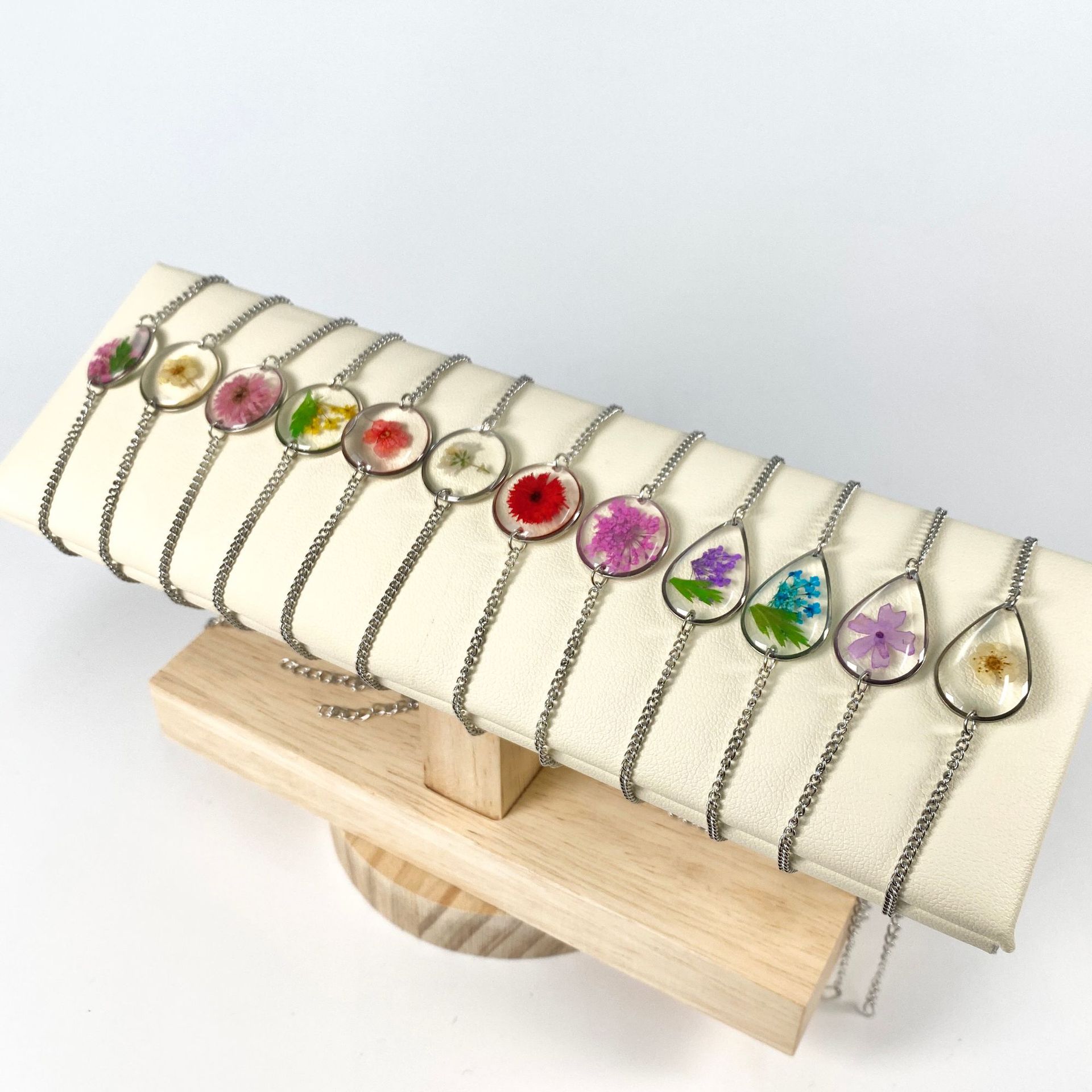 Small Fresh December Flower Bracelet Niche Temperament Glue Dropping Resin Jewelry Silver Fashion Natural Dried Flower Accessories