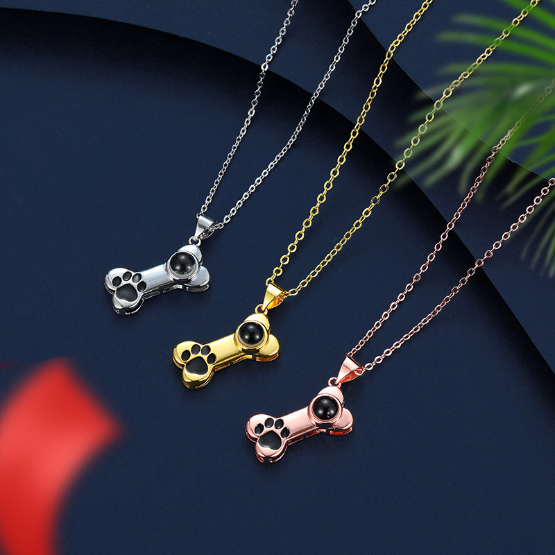 Cross-border hot selling new dog bone glue necklace women 100 languages I love you HD color photo projection jewelry