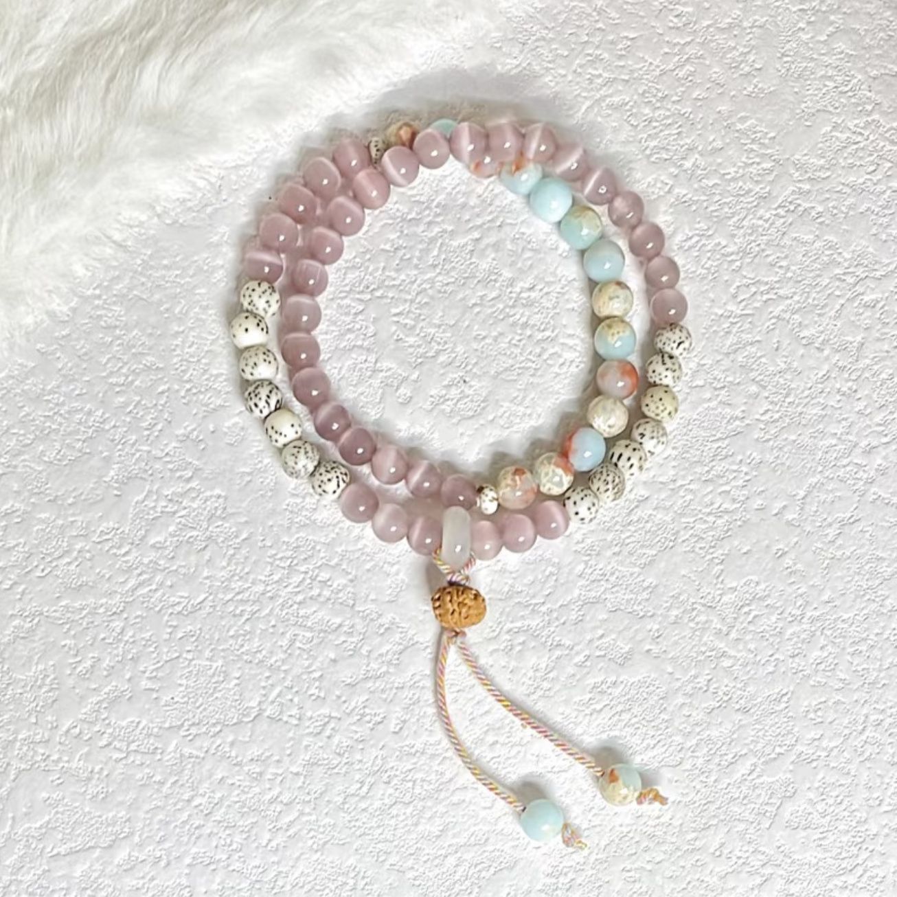 Rose Pink Cat's Eye Stone Bracelet Exquisite Chinese-Style Beaded Double-Circle Jewelry New Chinese Niche