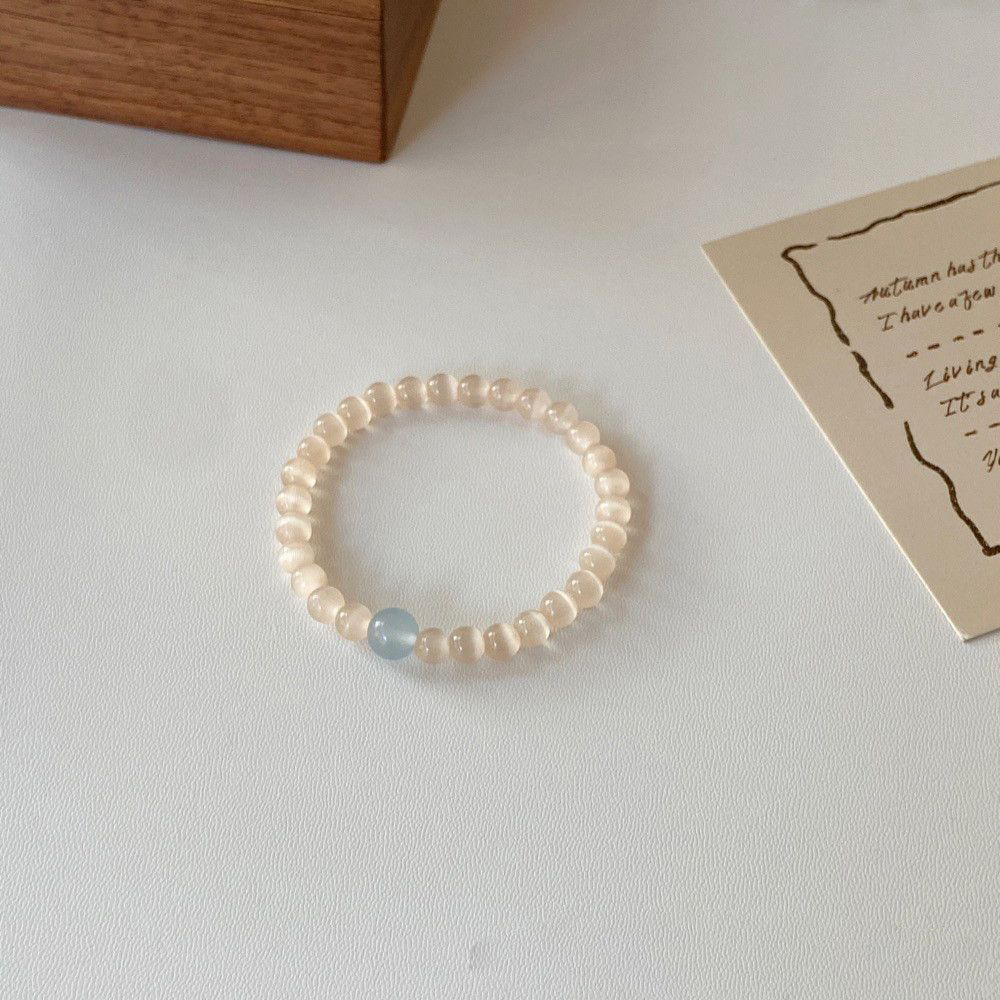New Chinese Coconut Milk Frozen Original Cat's Eye Stone Vintage Niche Bracelet Design Beaded Ice High-grade All-match Bracelet