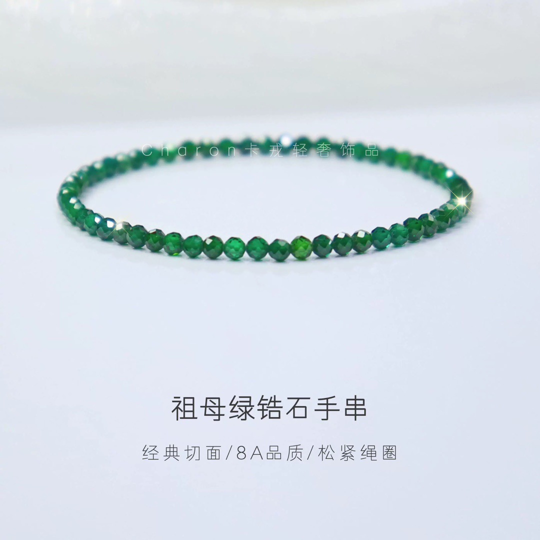 Natural Emerald Bracelet Green Forest Bracelet 4mm Ultra-Fine Elastic Rope Men's and Women's Compound Bracelet Whitening Accessories