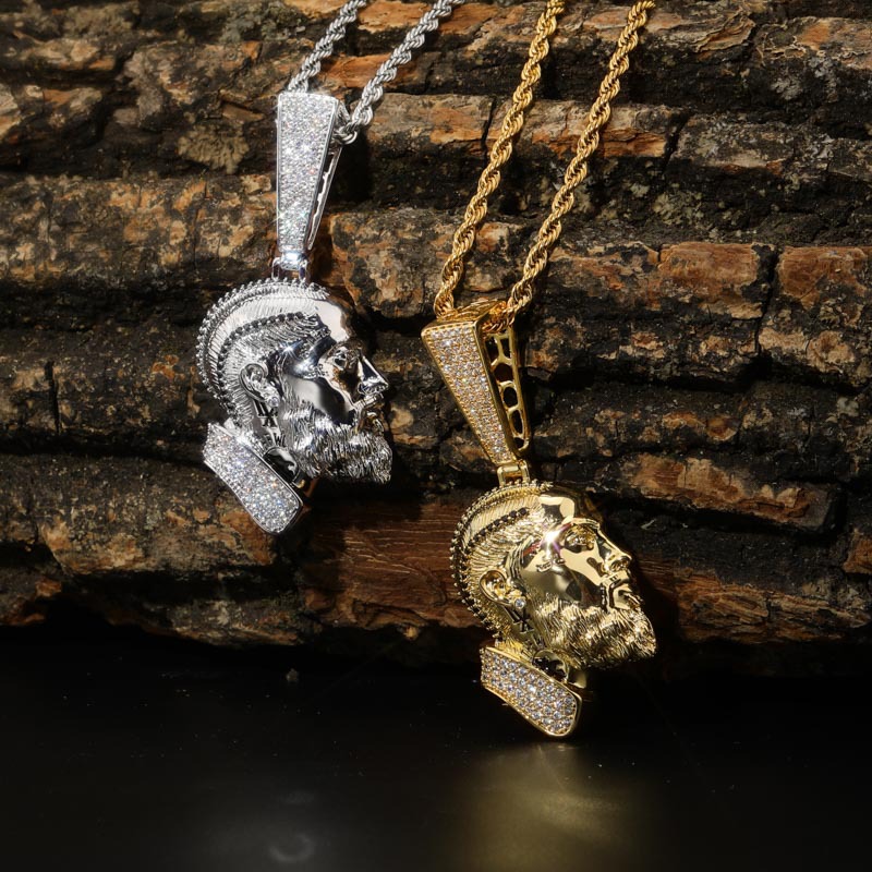 American rapper NipseyHussle head side face pendant full zircon jewelry hip hop hipster necklace