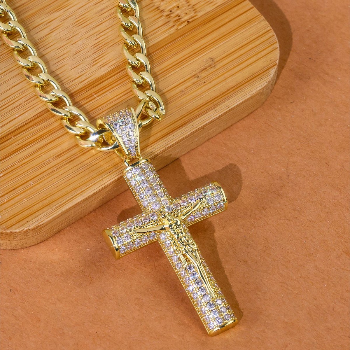 Full Diamond Cross Hip-Hop Necklace for Men and Women Collarbone Chain Ins Style Cuban Chain High Street Rap Street Zircon Pendant