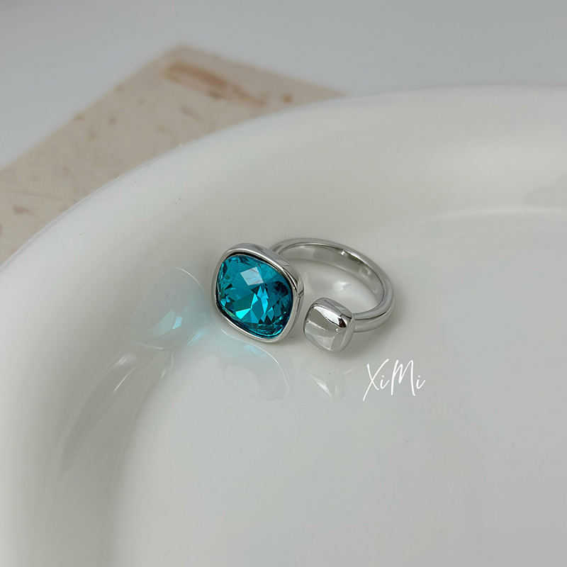 French style light luxury Blue gem open ring female niche design exquisite fashion index finger ring middle and ancient high sense hand