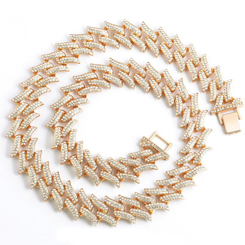 15mm Diamond-Shaped Spring Clasp Cuban Chain Hip-Hop Full Diamond Cuban Necklace Men's Trendy Brand Rap Street Dance Accessories Wholesale