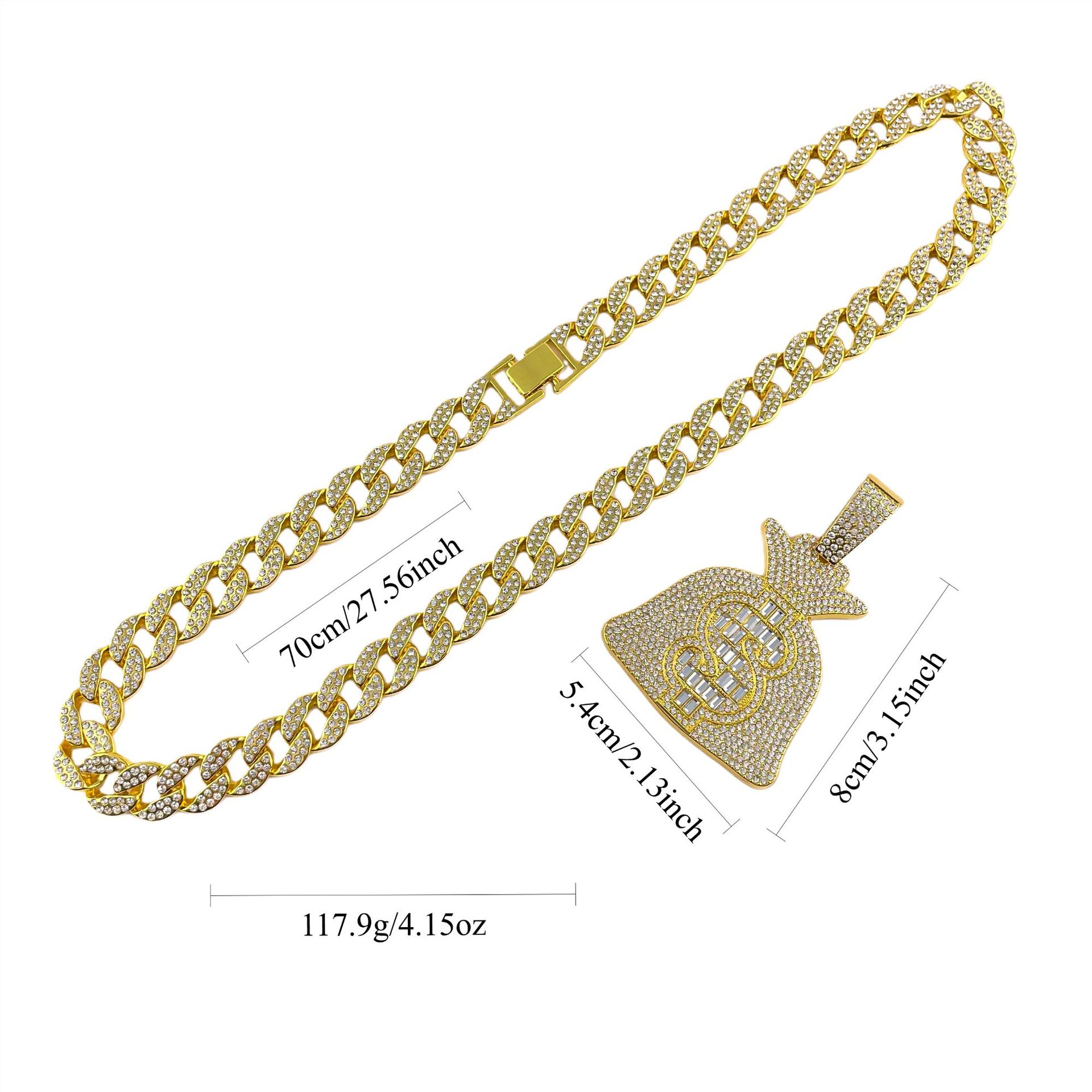 New Alloy Personalized Rock Candy Diamond Beauty Coin Money Bag Pendant Rhombus Cuban Necklace Hip-Hop Rap Jewelry