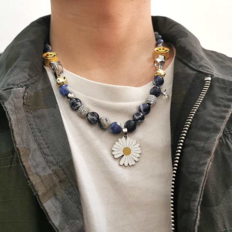 National fashion ins Internet celebrity star planet with diamond smiley face Daisy titanium steel necklace hip hop rap student necklace