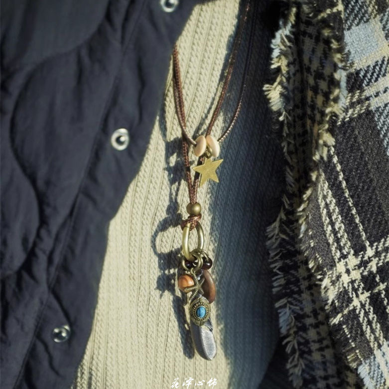 Soul Collision Couple Necklace European and American Cross Chain Hip-Hop Rap American Pendant Accessories Retro Feather Ethnic Style