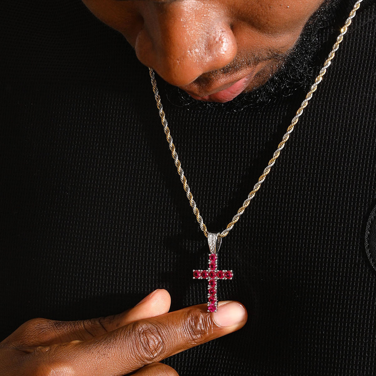 Hip Hop Full Diamond Cross Necklace Men's Fashion Brand HipHop European and American Rap Men's Fashion Personality Necklace Pendant
