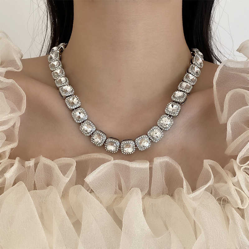 American Style Trendy Brand Diamond-encrusted Candy Necklace Street Cuban Chain Rap ins Diamond-encrusted Hip Hop Hot Girls Neutral Style Accessories
