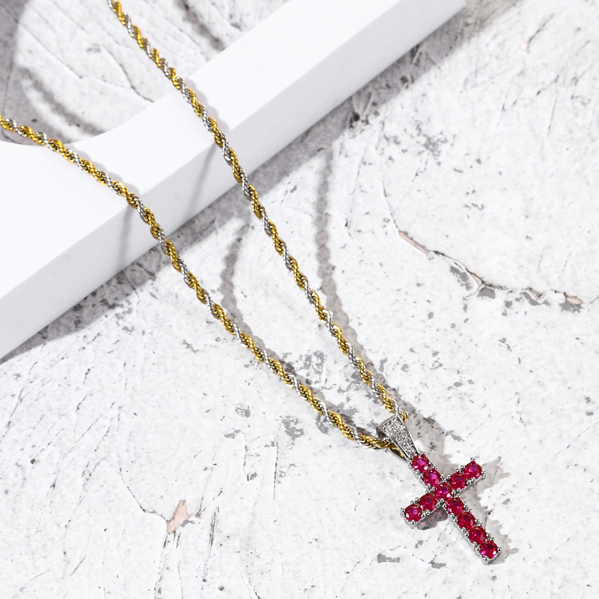 Hip Hop Full Diamond Cross Necklace Men's Fashion Brand HipHop European and American Rap Men's Fashion Personality Necklace Pendant