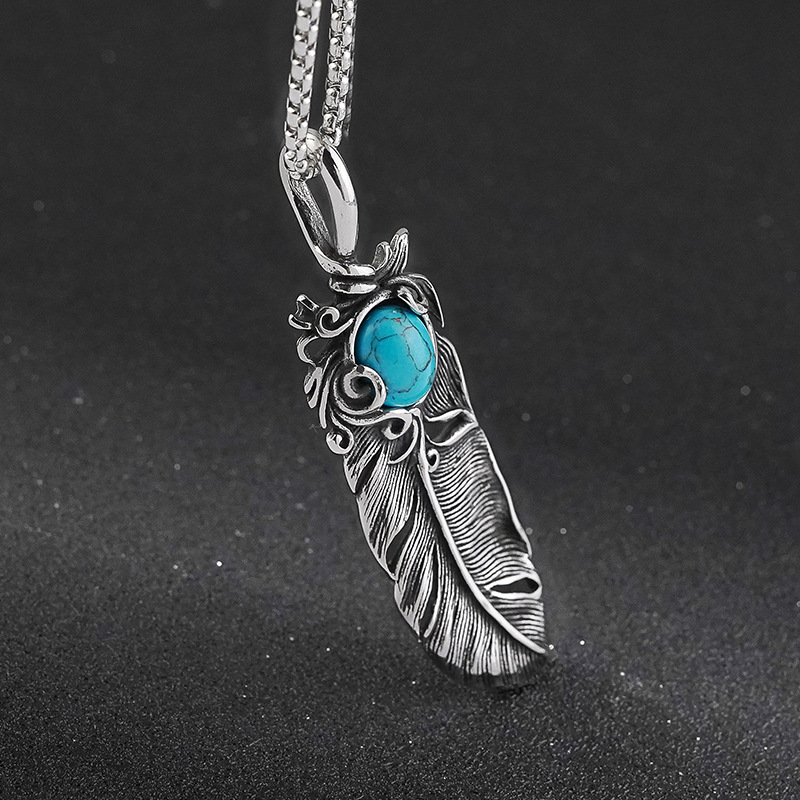 Cross-border new titanium steel necklace European and American pearl chain hip-hop rap American pendant accessories retro feather ethnic style