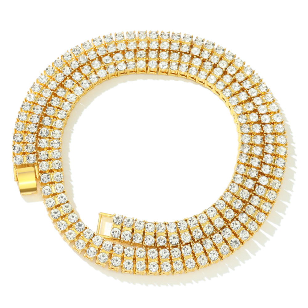 European and American Style Full Diamond Double-Row Necklace, Personalized Hip-Hop Rap Street Dance Disco Hoodie Outfit Trendy Chain Necklace