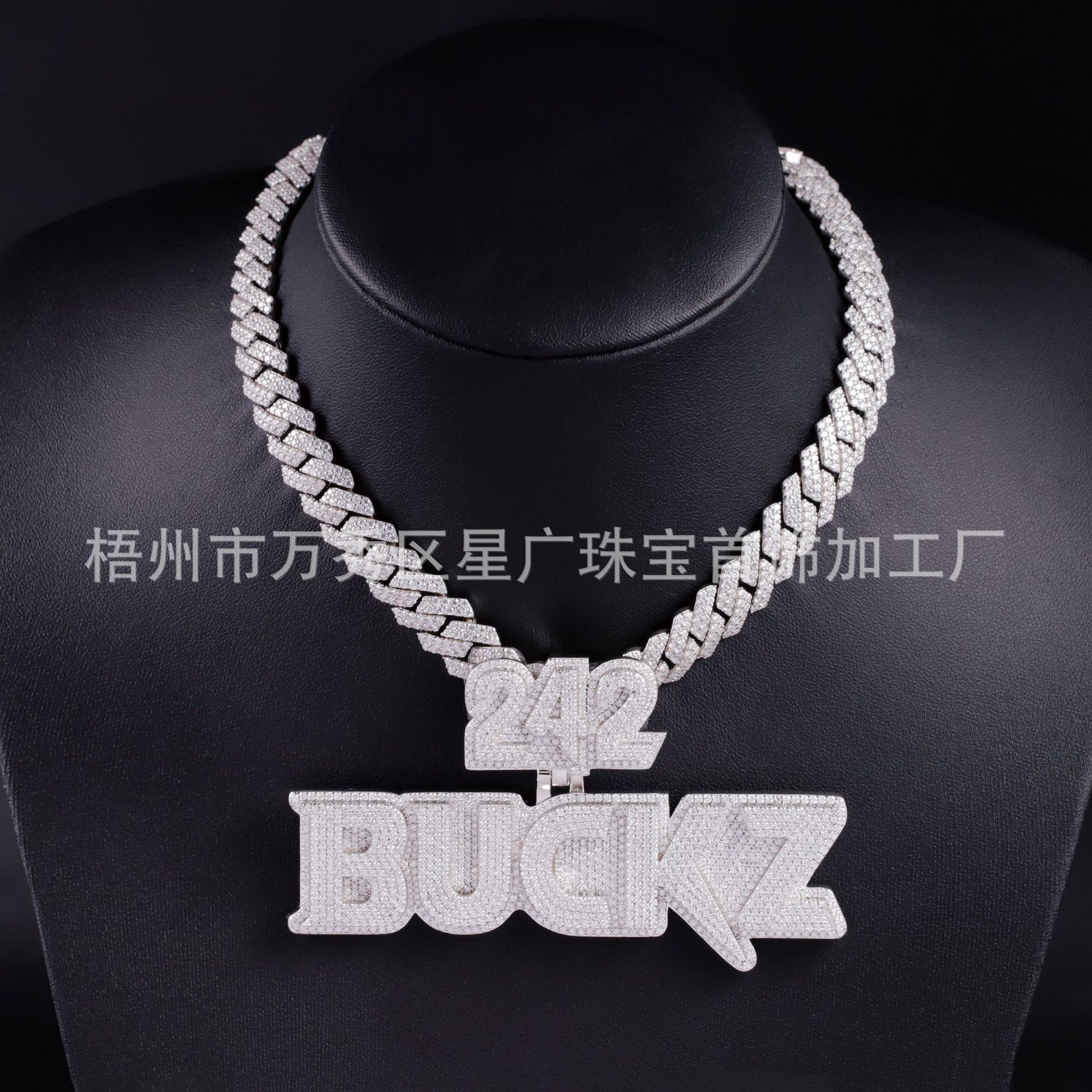 European and American Cross-Border Popular Custom-Made Full Diamond Letter Pendant Necklace Nightclub Rap Trend Hip-Hop