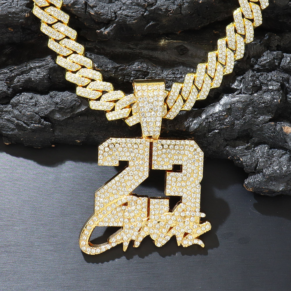 European and American Hip-Hop Rap Full Diamond Number Letter No. 23 Pendant Necklace with Diamond Rhombus Cuban Chain Clavicle Chain