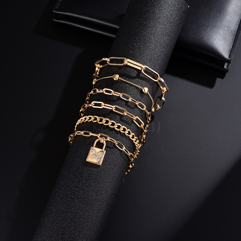 European and American cross-border gold lock chain bracelet female metal rock metal bracelet Middle East popular rap hip hop style