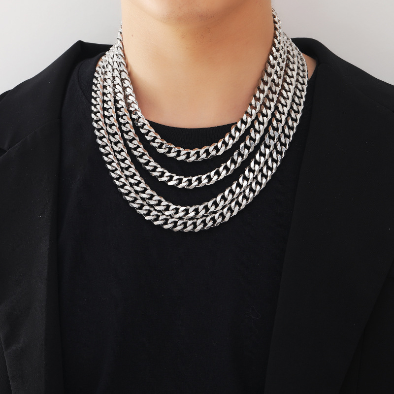 European and American titanium steel Cuban necklace men's high street hip hop American rap all-match chain ins clavicle chain female fashion