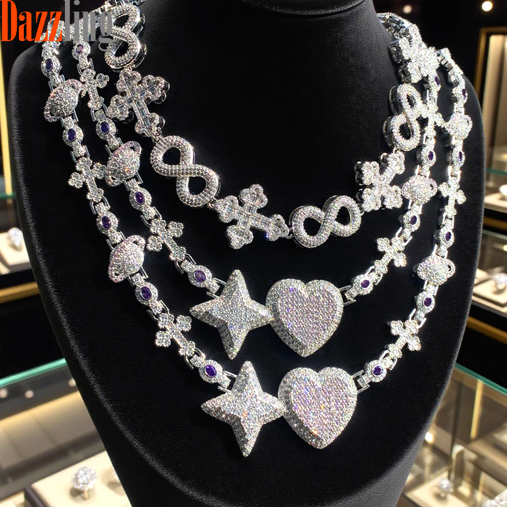 New Men's Hip Hop Heart Star Cross Zircon Necklace Rap Fashion Accessories Cross Border Jewelry Wholesale