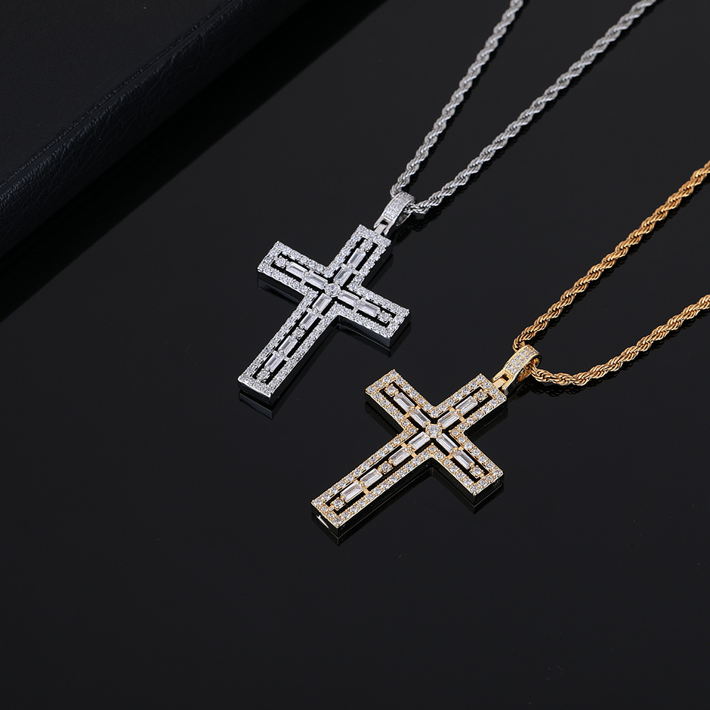 Cross-Border Exclusive Hip-Hop Cross Necklace Copper Micro-Inlaid Pendant Necklace Rapper Accessories Wholesale in Stock