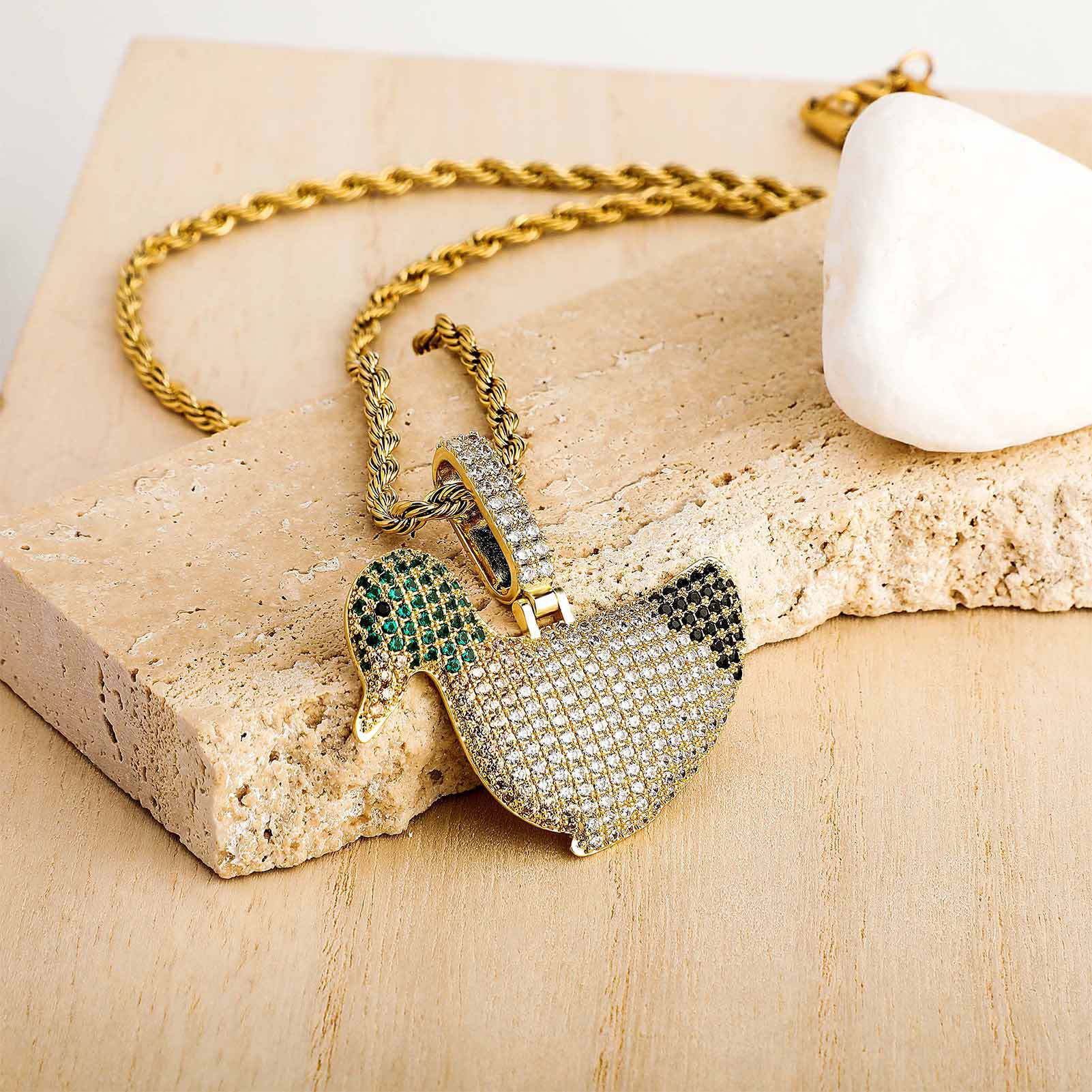 Jinao Personality Rap Full Diamond Necklace Cute Animal Duck Pendant National Fashion Hip Hop Jewelry All-Match Accessories