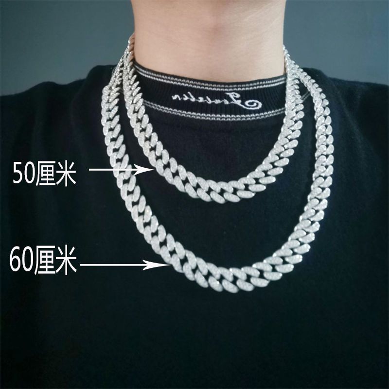 European and American Fashion Rock Candy Diamond Square Cuban Chain Ins Hip-Hop Bracelet Full of Diamonds Rap Trendy Men's Necklace Free Shipping
