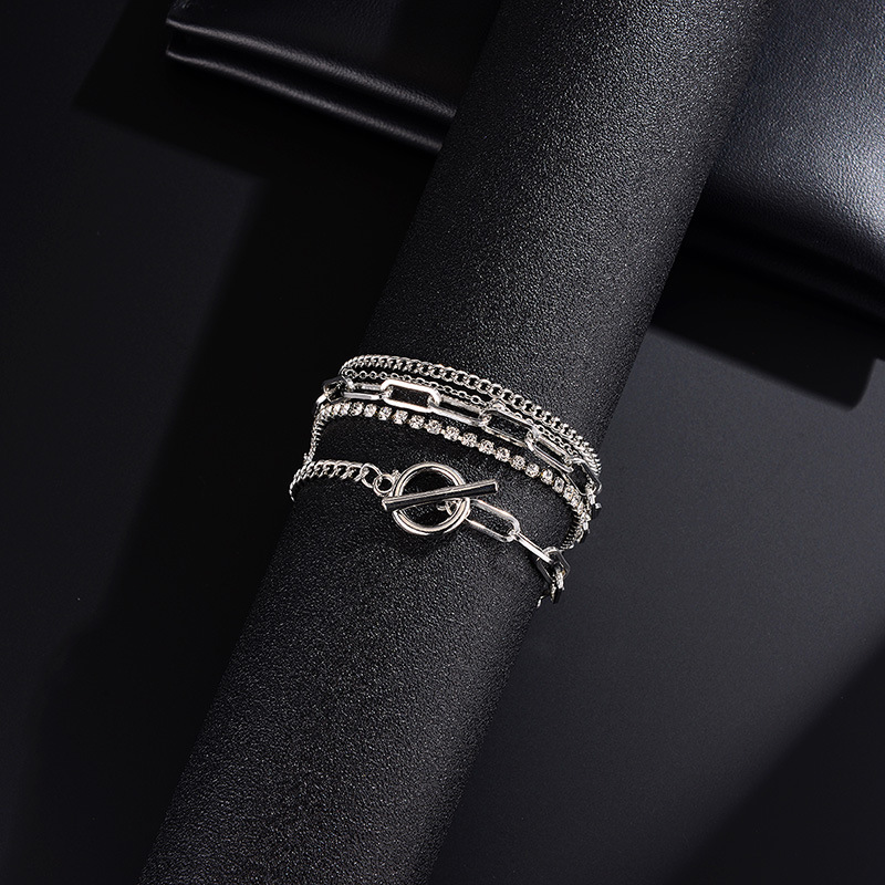 European and American Cross-border Cuban Chain Rhinestone Bracelet Women's Metallic Bracelet Middle East Popular Cross-border Rap Hip-hop Bracelet